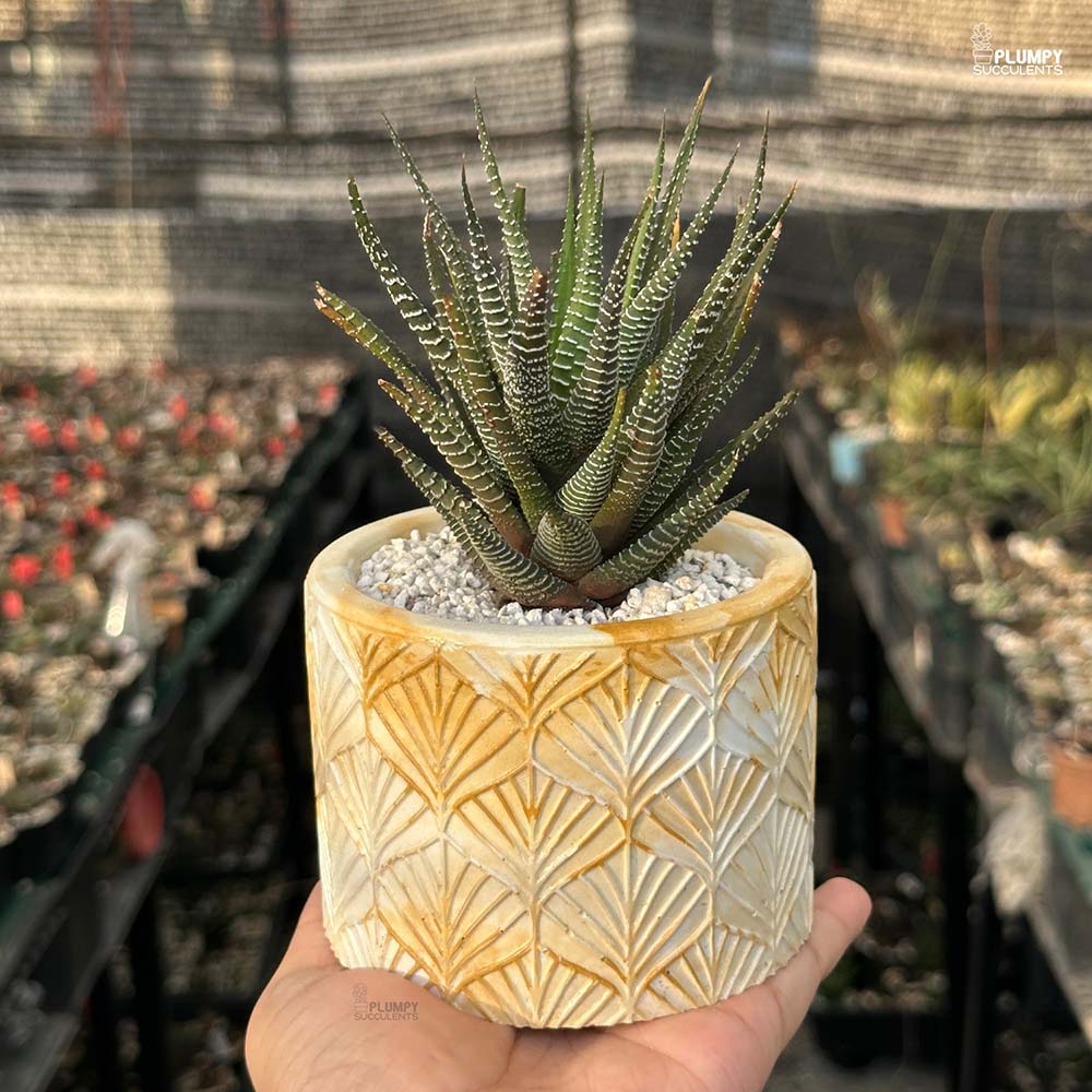 "Haworthia Fasciata Zebra in 4.5-Inch Round Textured Planter 🌱"