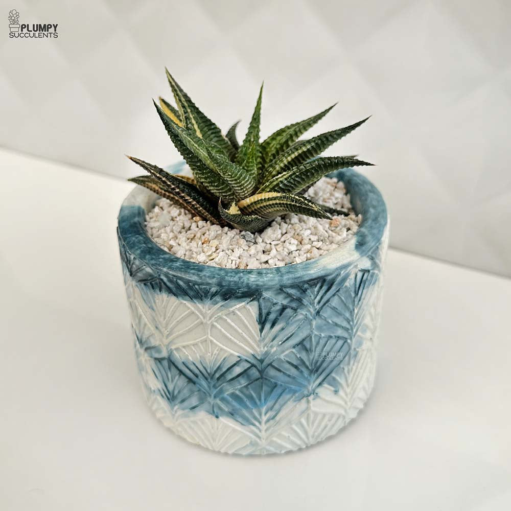 "Haworthia Limifolia Variegated in 4-Inch Dark Blue Marbly Planter 🌱"