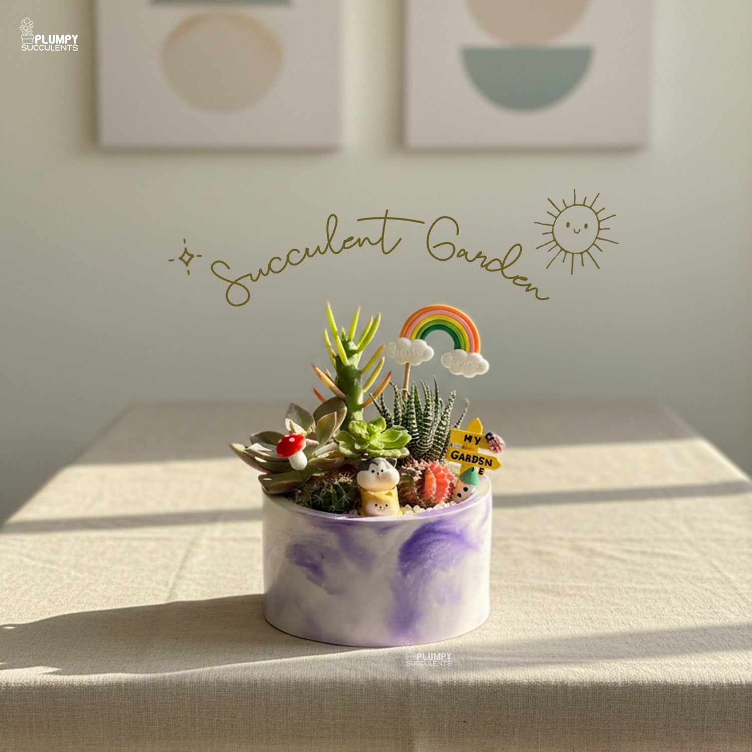 Create an oxygen-rich, colorful corner in your home with this vibrant succulent arrangement - perfect for sunny dining tables, cozy living room tops, or even your kitchen window sill.