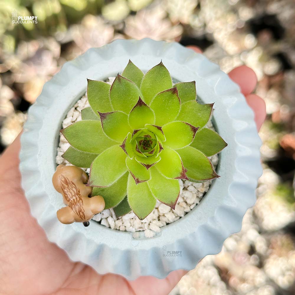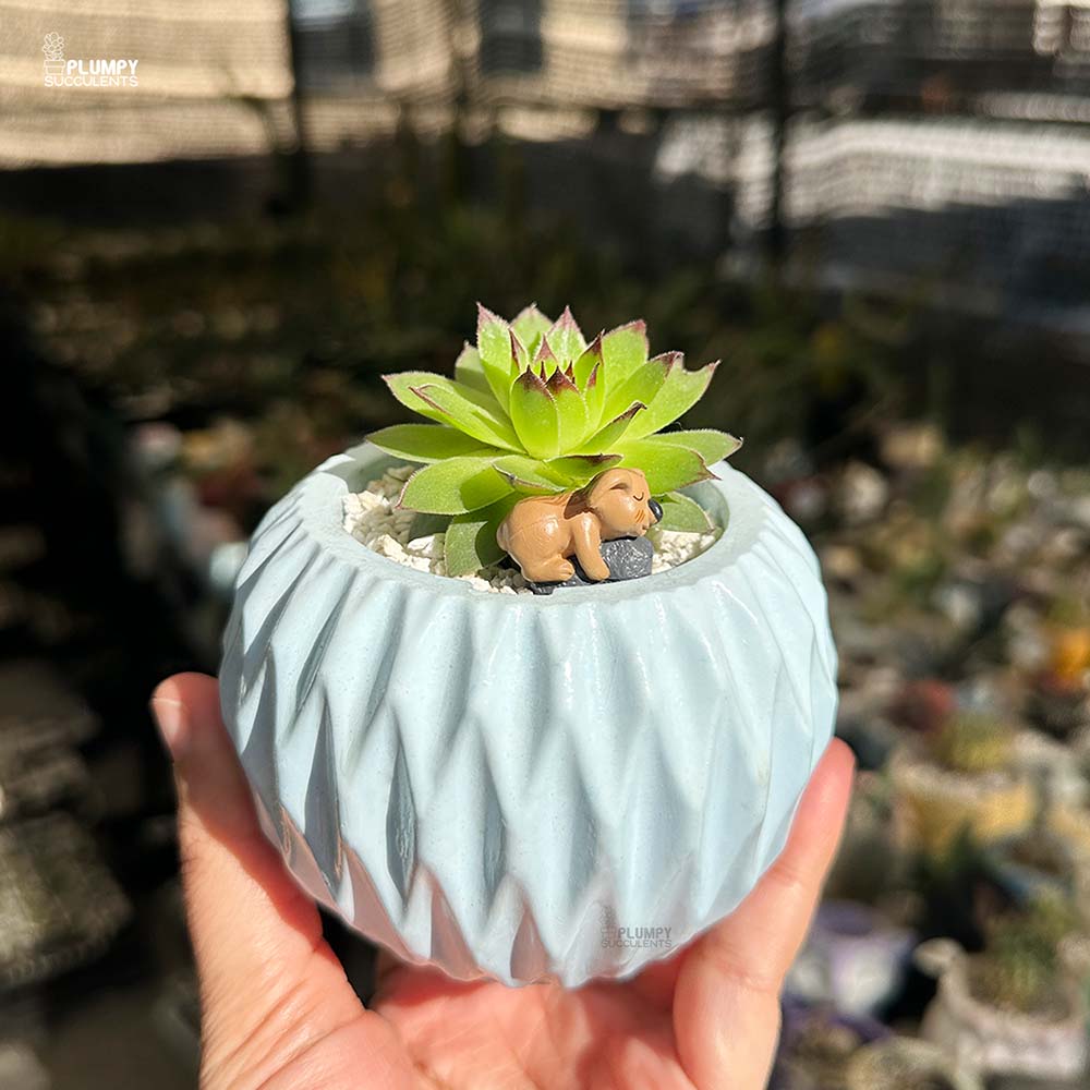 Sumpervivum (Hen & Chicken) in Pastel Blue Planter